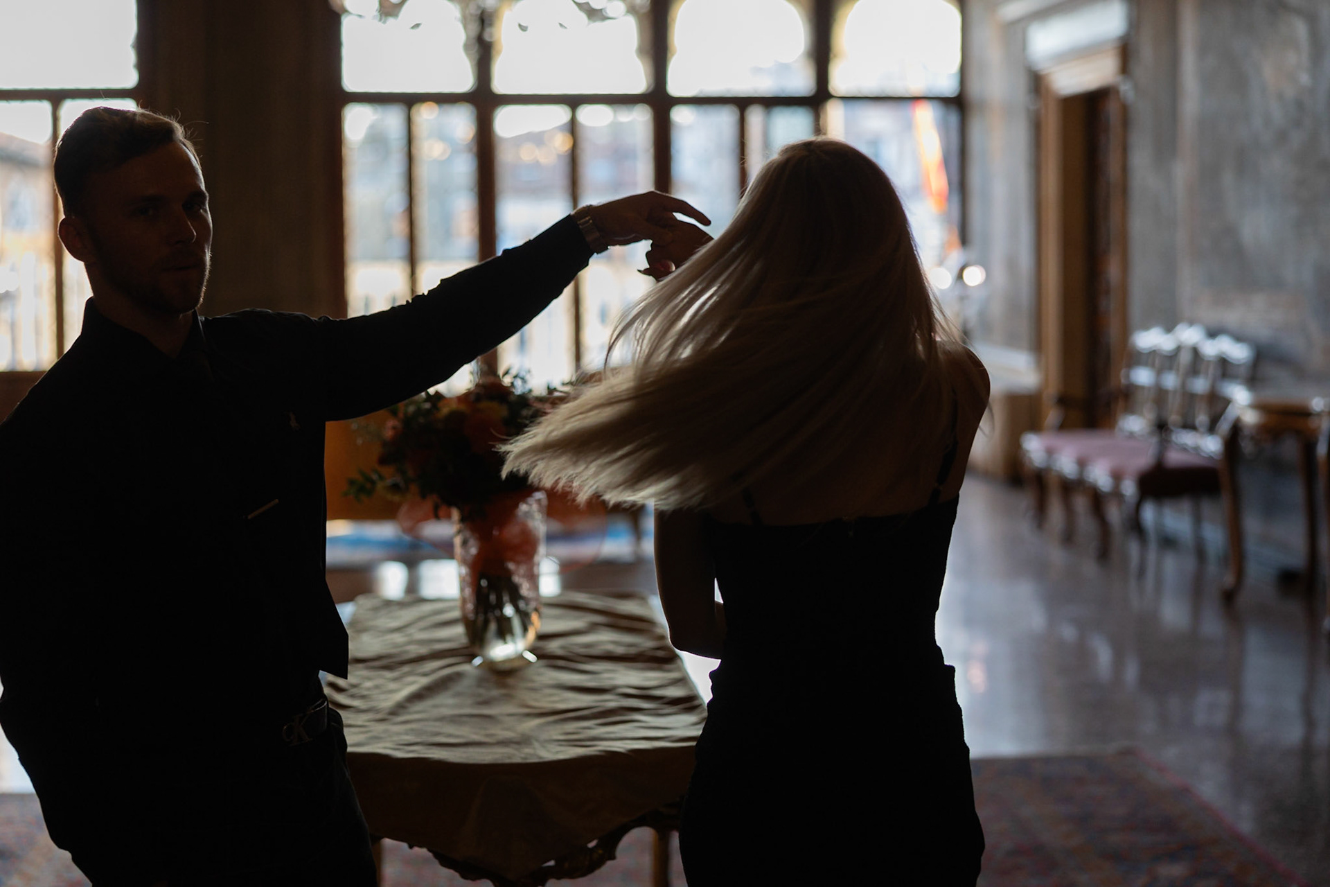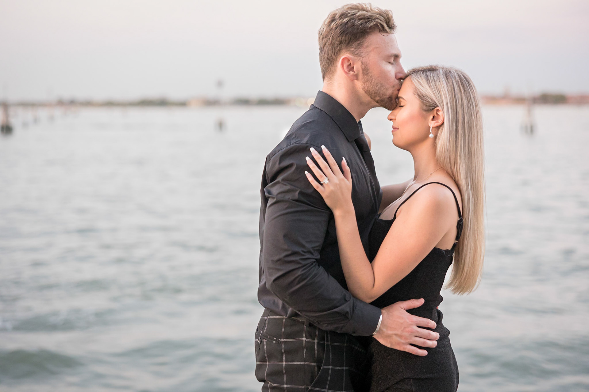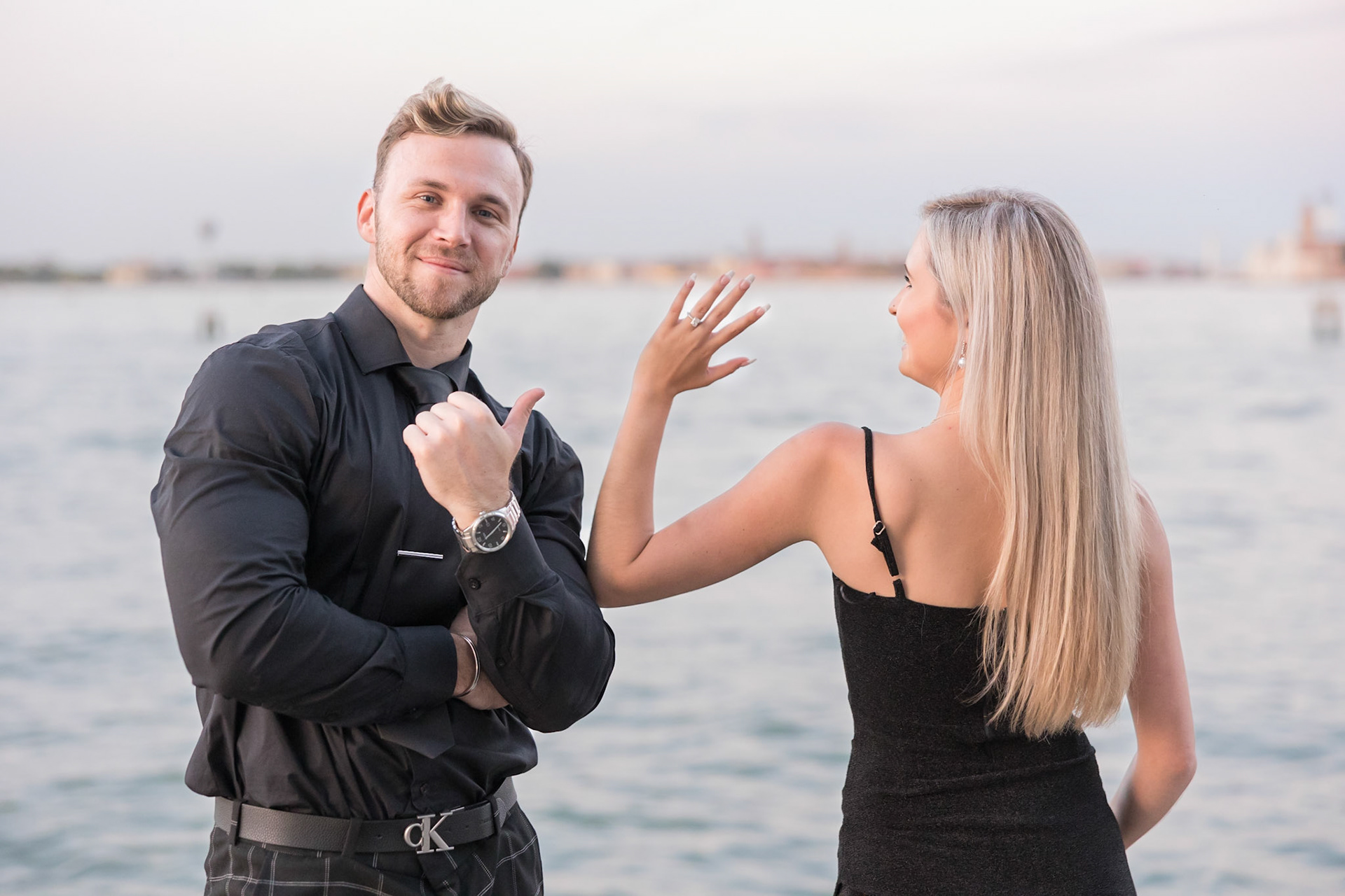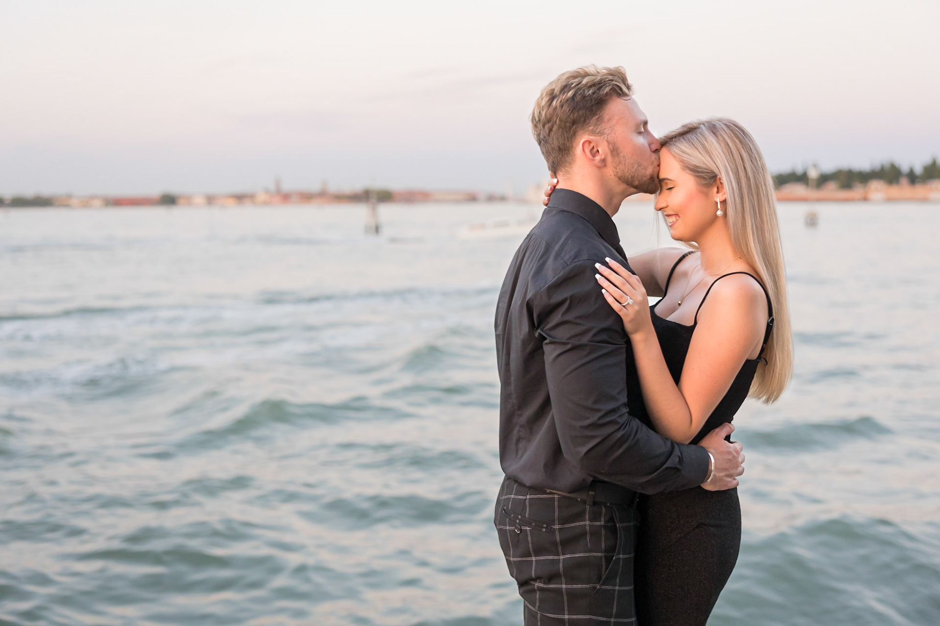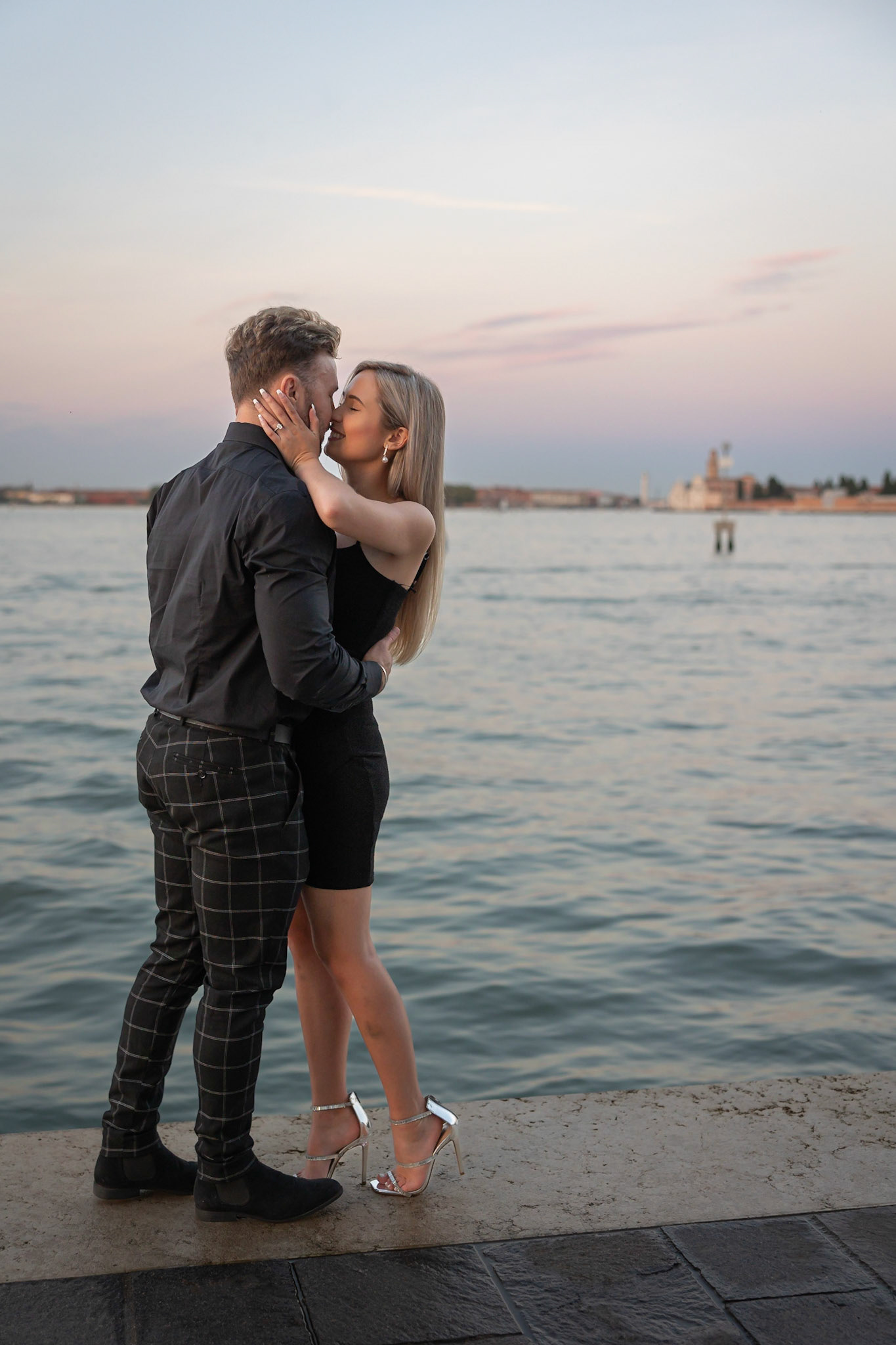 It started as a gondola tour on Grand Canal in Venice. The presence of a violinist hinted that it was a special occasion, soon after departure we crossed Rialto bridge and the proposal has been made. Once back to hotel Ca' Sagredo a short but intense engagement session with sunset light and we ended the photosession with a walk in Venice.