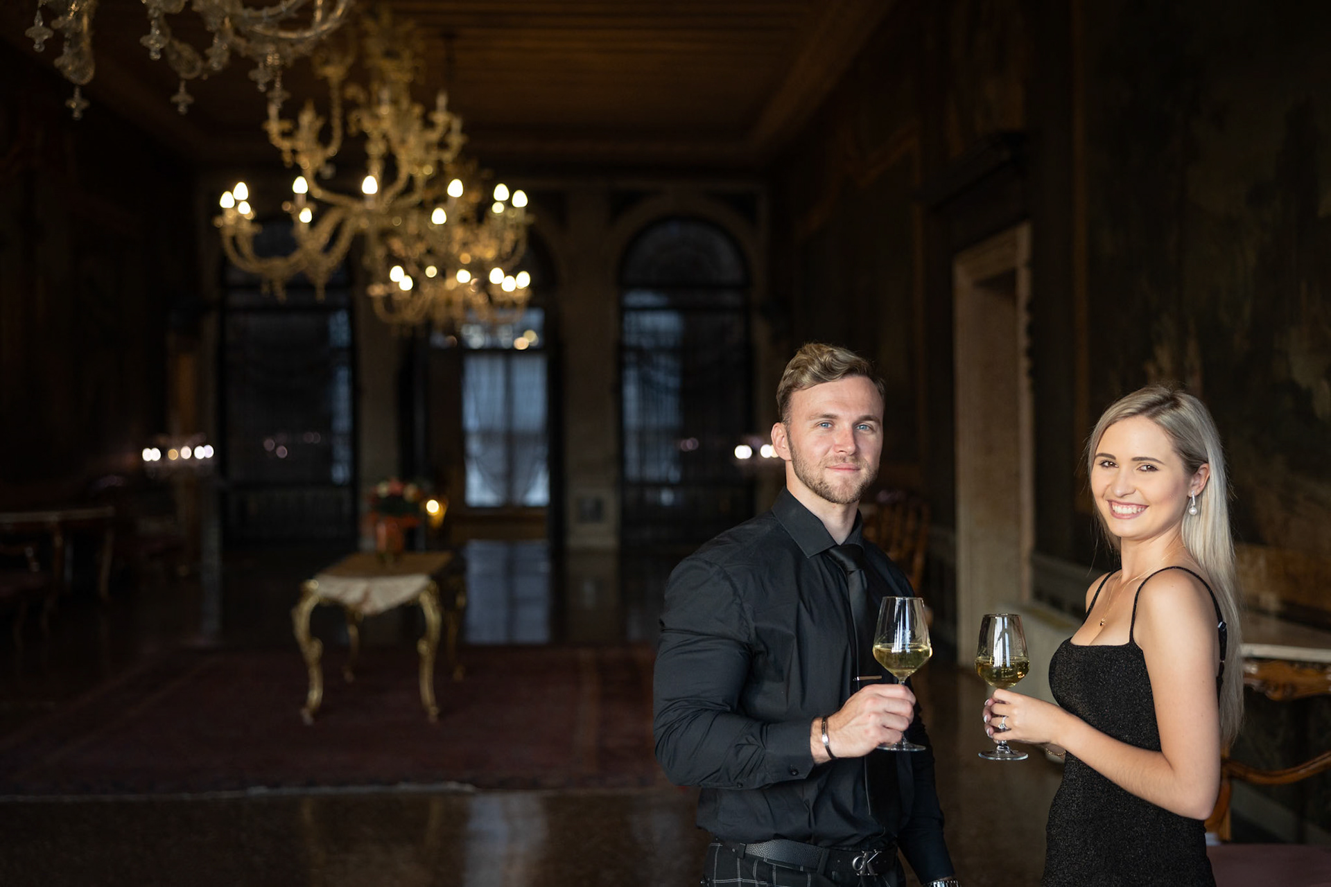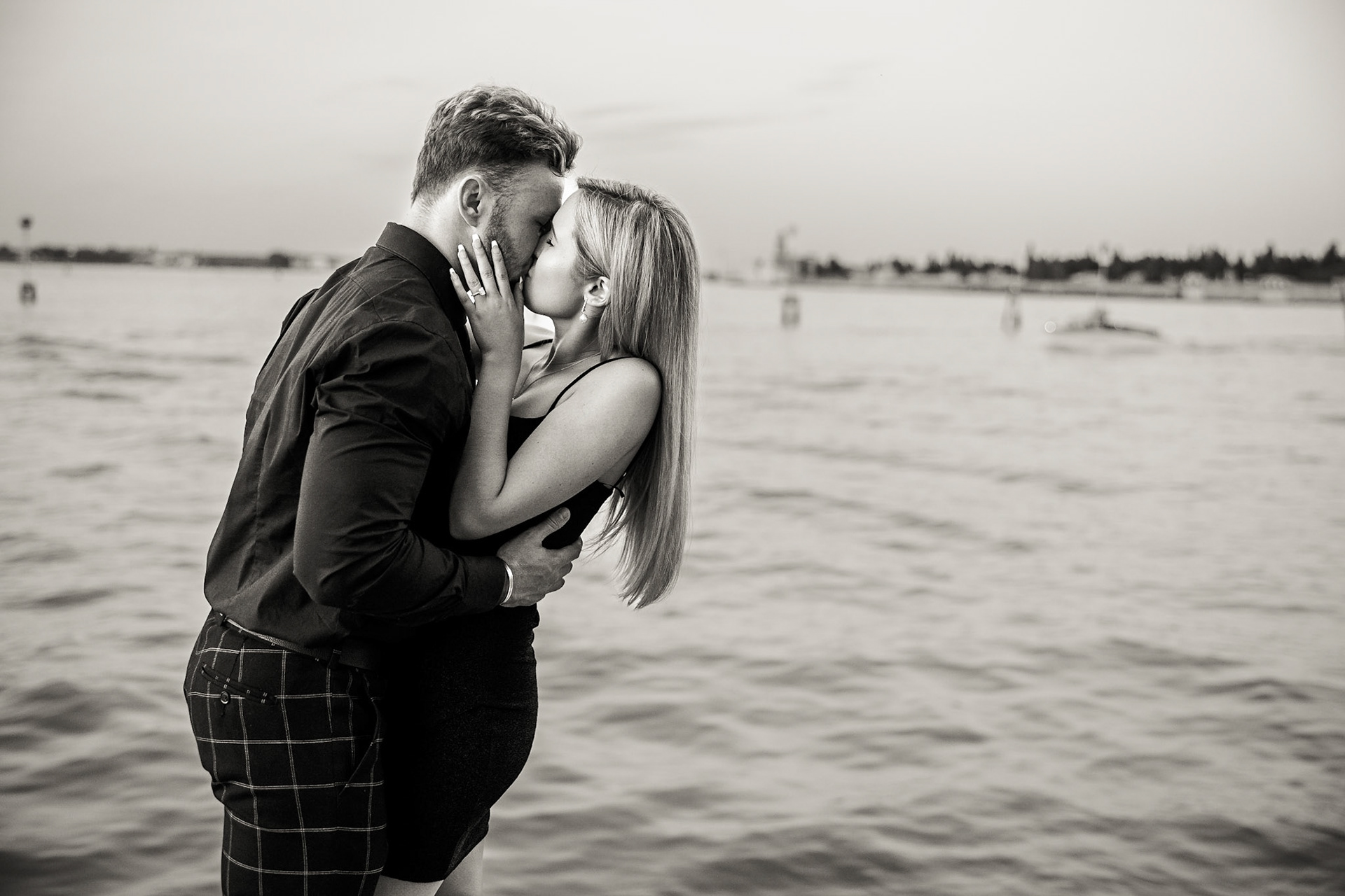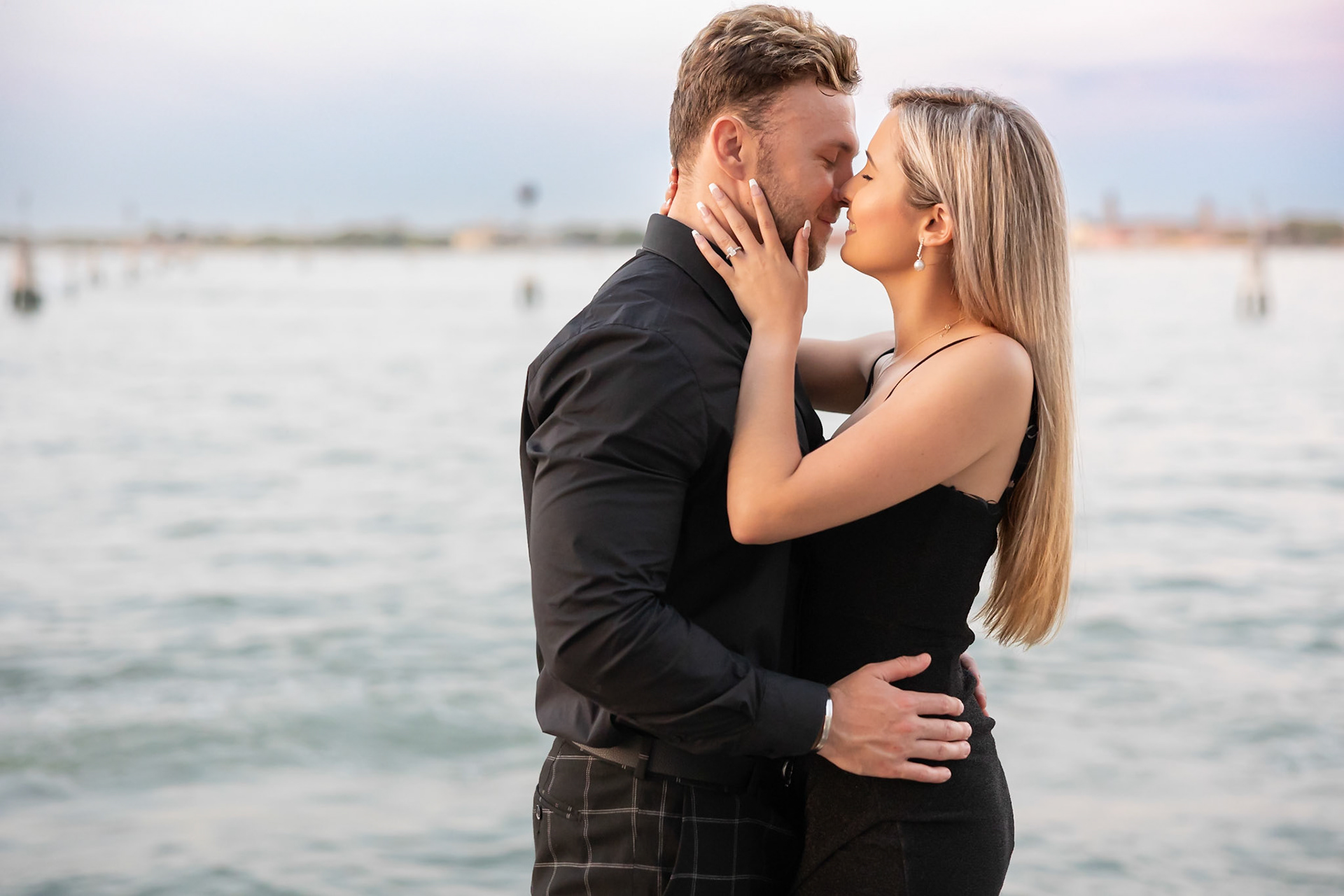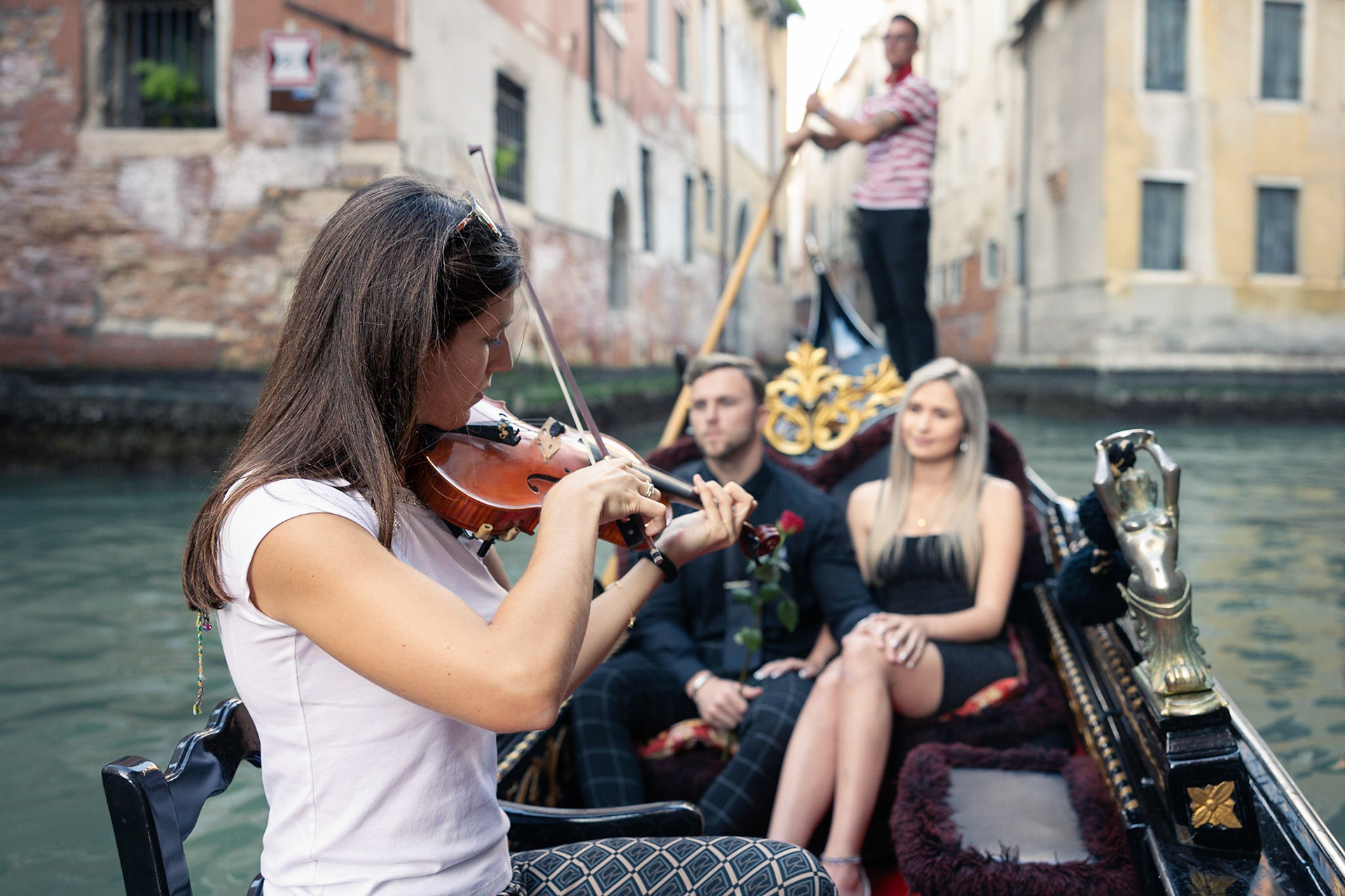 It started as a gondola tour on Grand Canal in Venice. The presence of a violinist hinted that it was a special occasion, soon after departure we crossed Rialto bridge and the proposal has been made. Once back to hotel Ca' Sagredo a short but intense engagement session with sunset light and we ended the photosession with a walk in Venice.