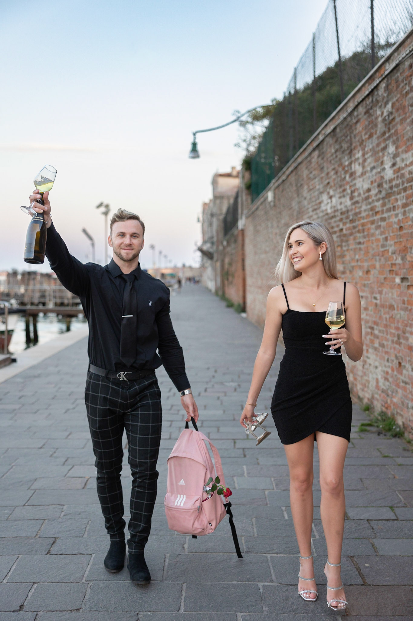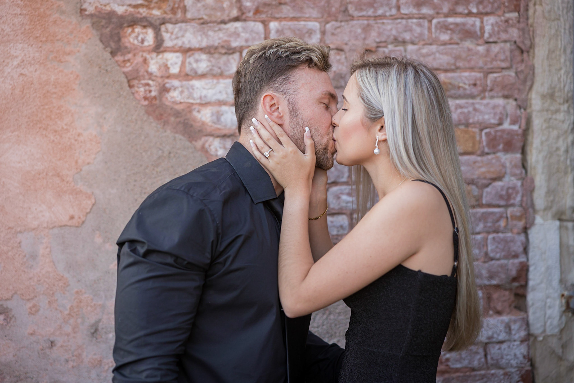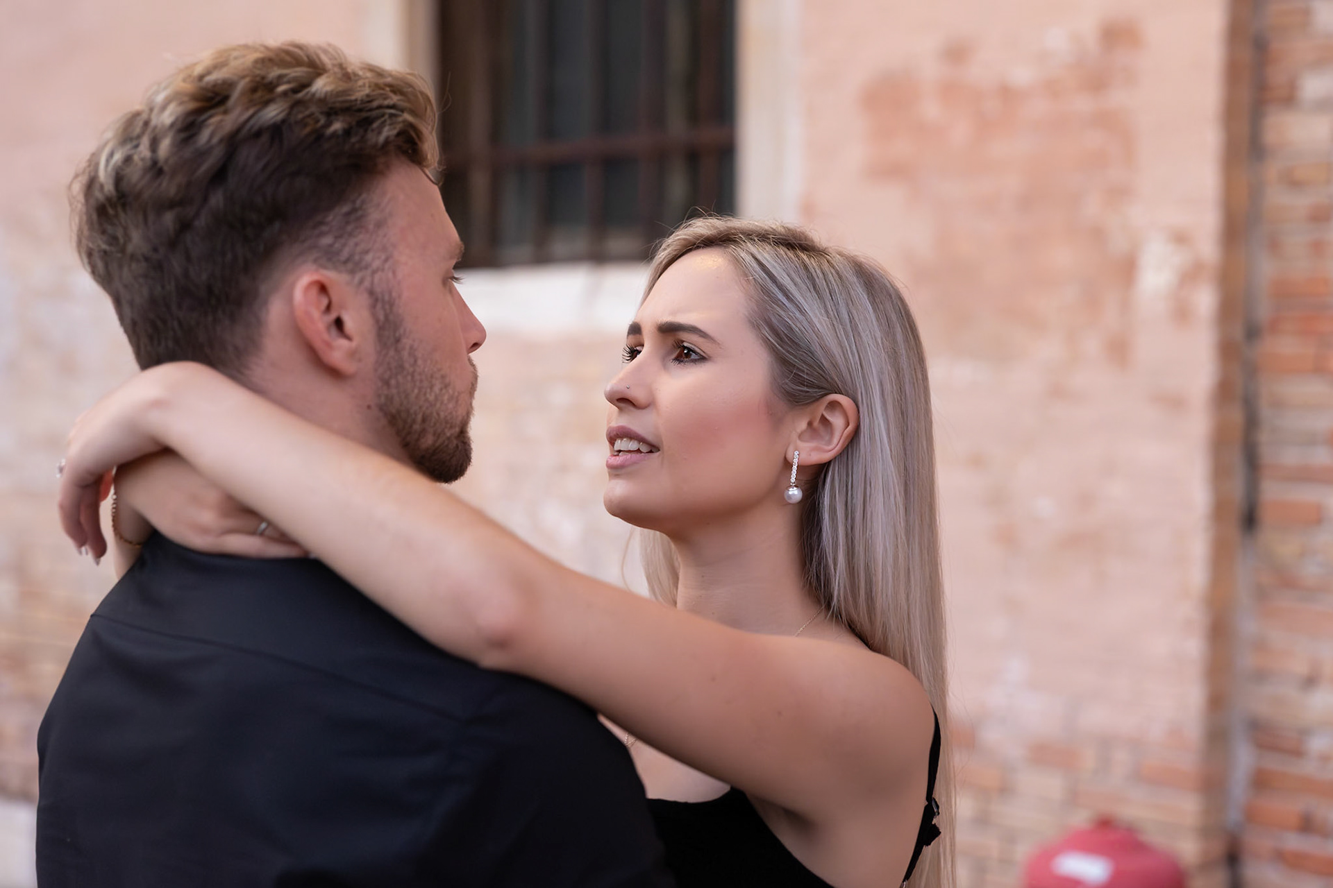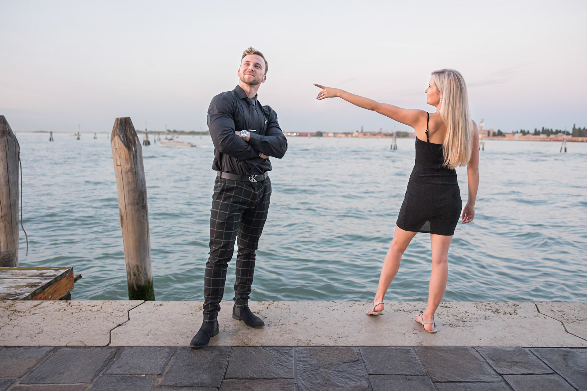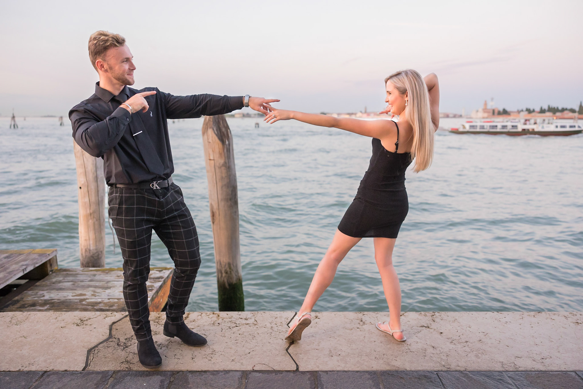 It started as a gondola tour on Grand Canal in Venice. The presence of a violinist hinted that it was a special occasion, soon after departure we crossed Rialto bridge and the proposal has been made. Once back to hotel Ca' Sagredo a short but intense engagement session with sunset light and we ended the photosession with a walk in Venice.